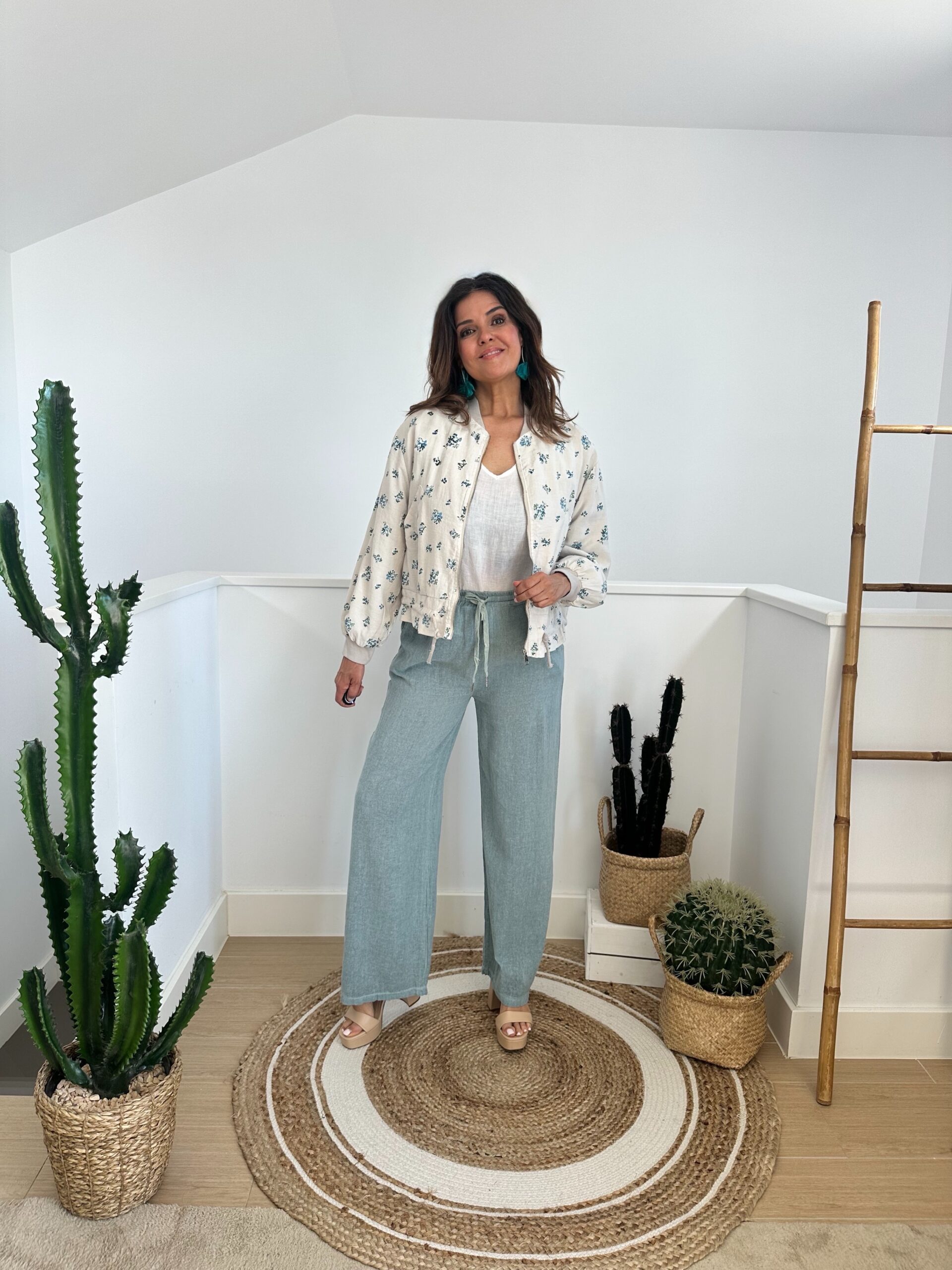Chaqueta bomber de lino flores